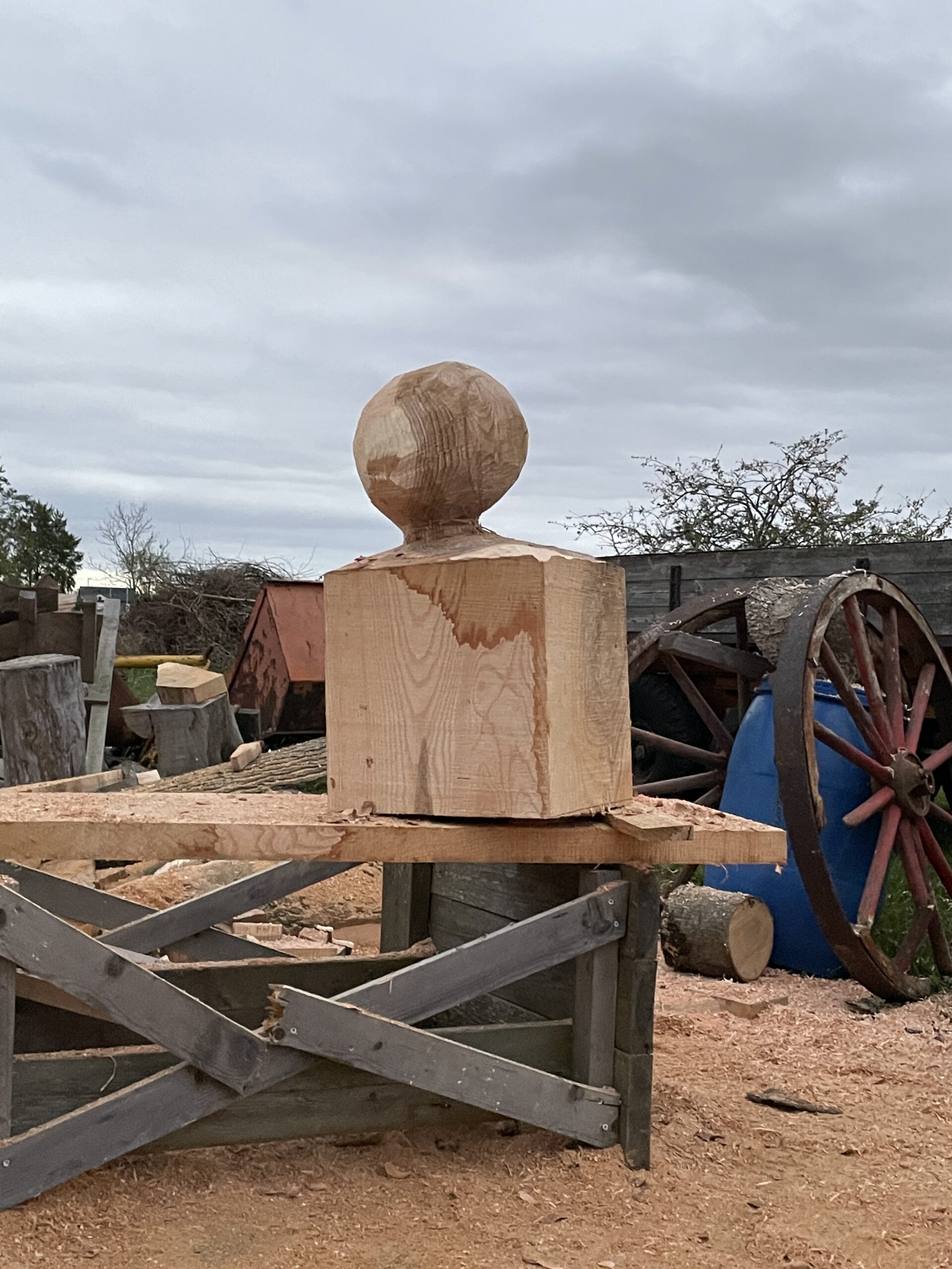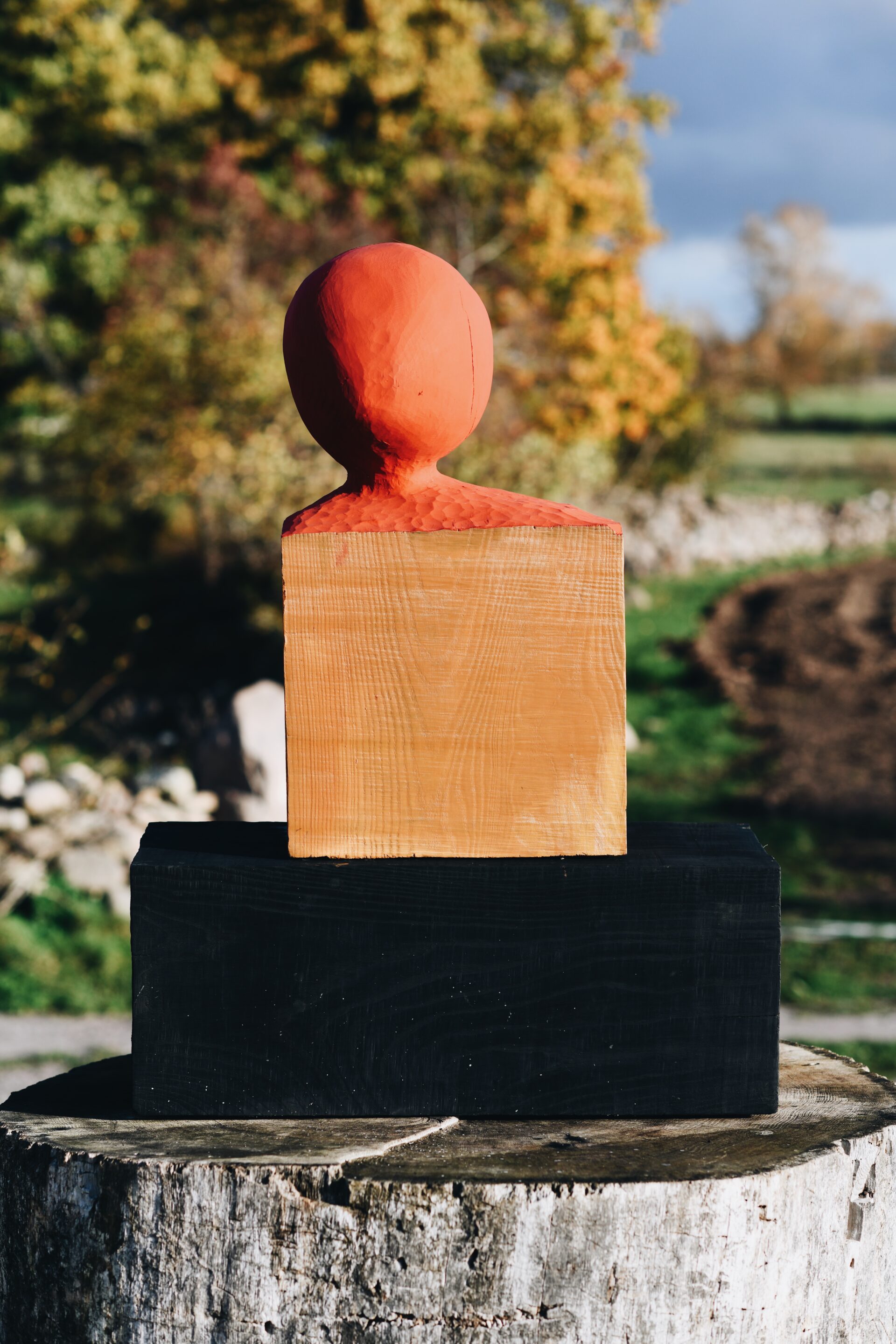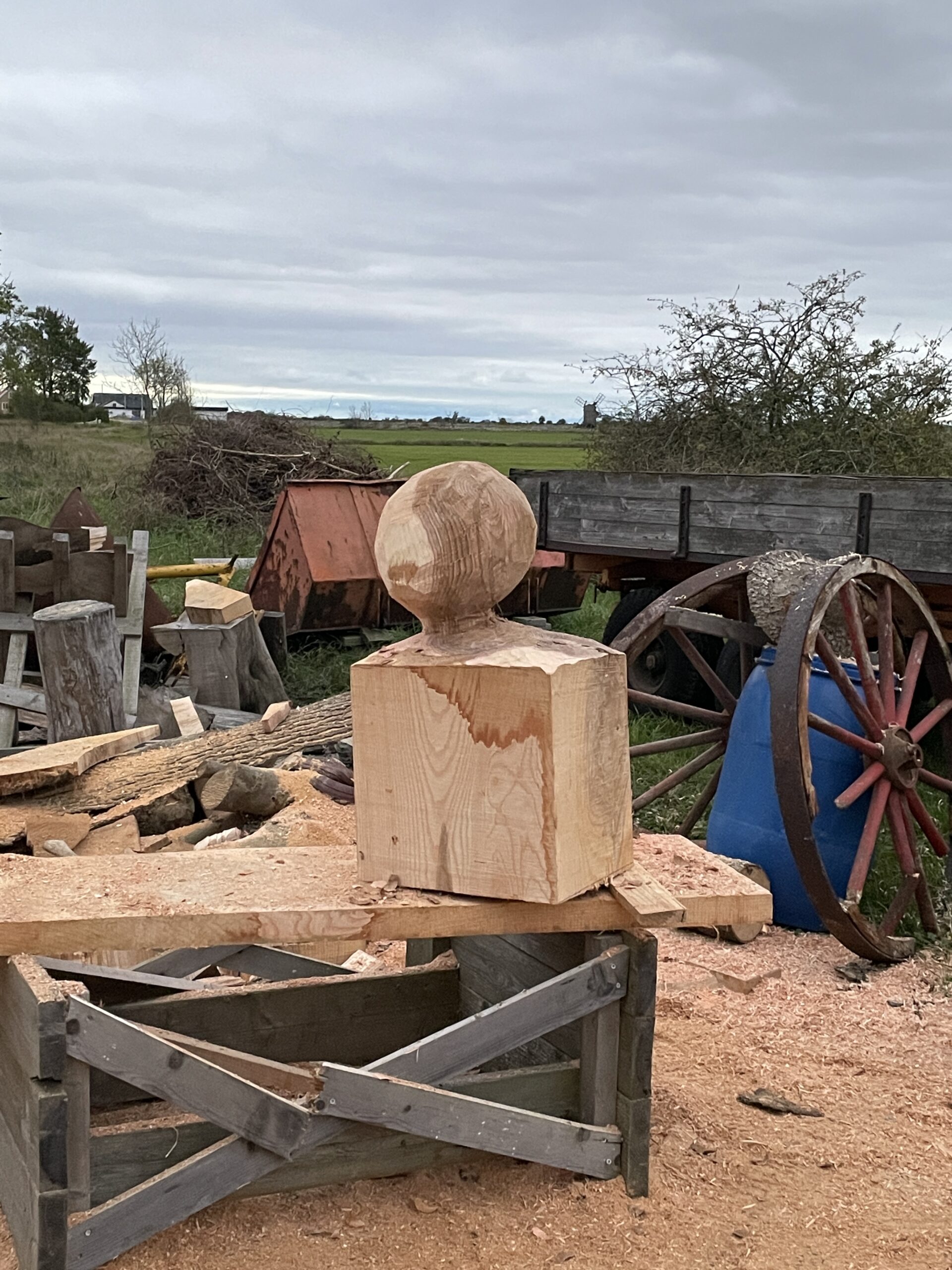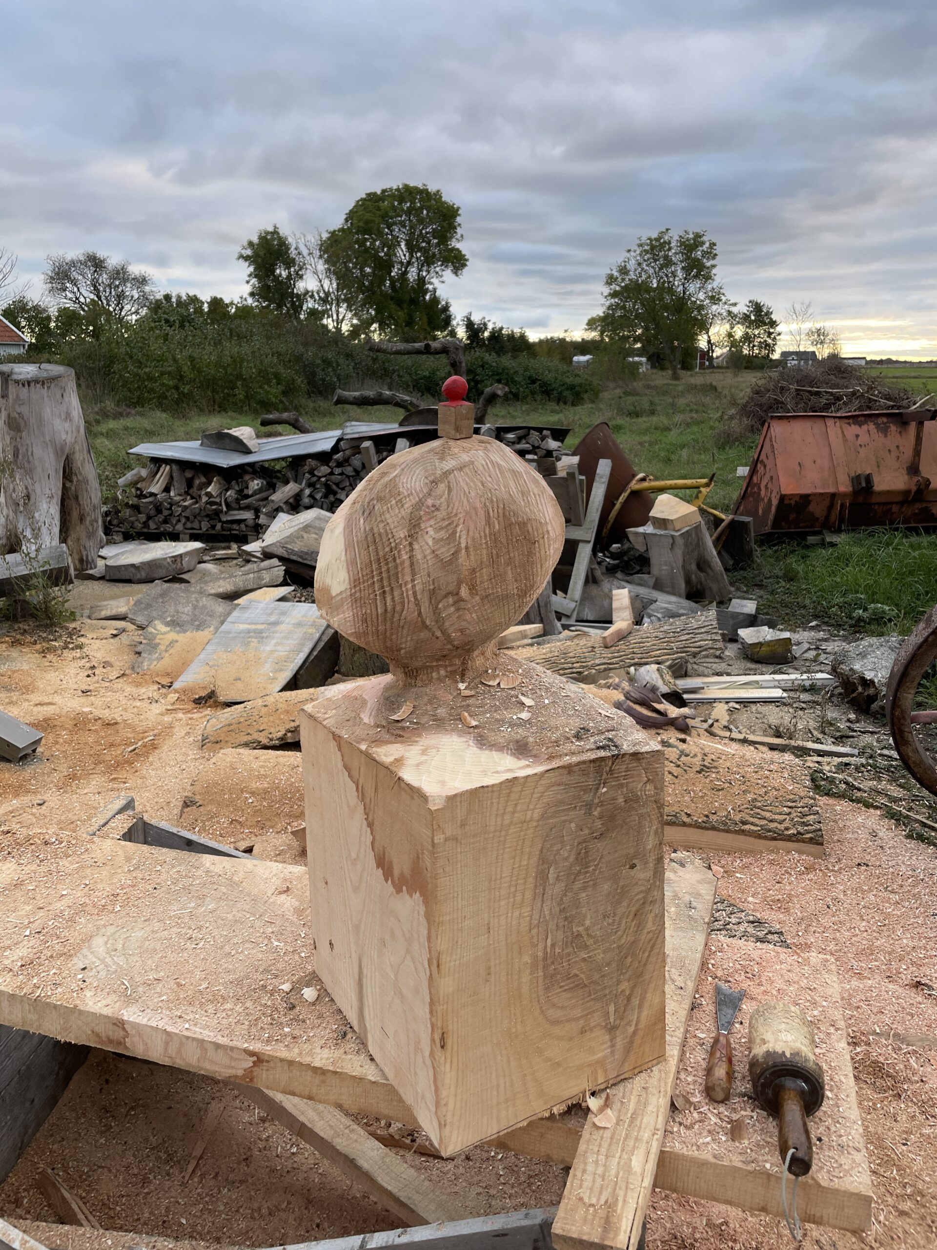 Hösten 2025 fick jag en förfrågan av skulpturkollektivet Stenhuggarkvinnor om att delta i utställningen URKRAFT en helg i oktober. Roligt tyckte jag och tackade omedelbart Ja. Det gav mig tillfälle att utveckla en idé som jag skissat på. I Mellby hittade jag Ask som passade till projektet. Under tiden jag högg skulpturen fick den namnet Det ensamma trädet. Mintanke är att det är början på en serie.